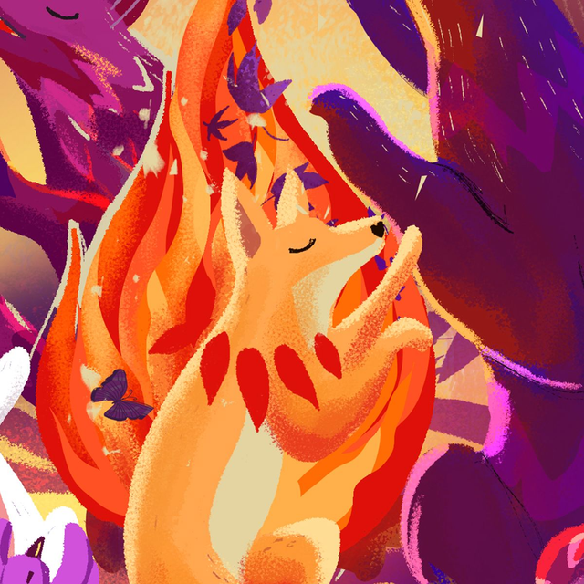 ☀️ Une jolie illustration d'une danse autour du feu aux couleurs d'automne qui apportera une touche de chaleur dans une déco cocooning! ️☀️
