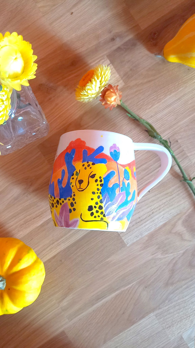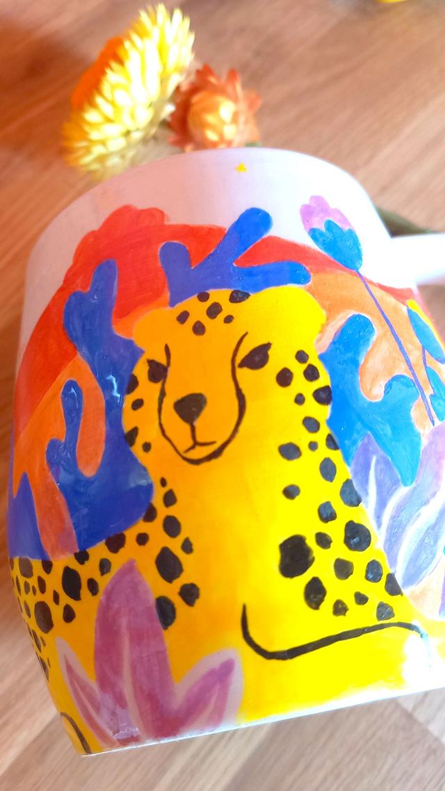 ☀️ Une jolie tasse colorée avec un guépard qui égayera votre table ! ️☀️